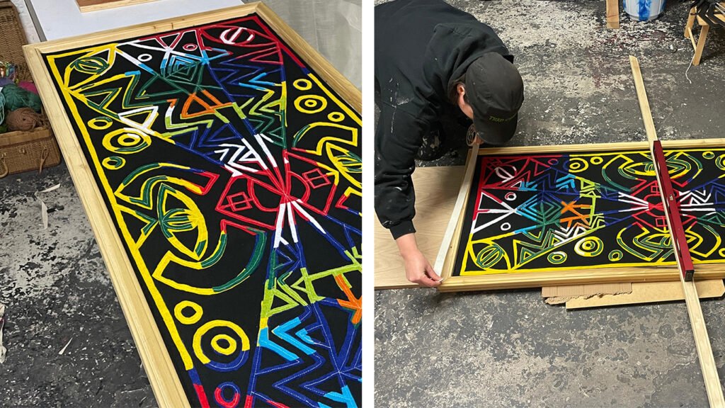 Ryan’s artwork takes the form of a reimagined tabletop — a meeting place woven from textiles, stories, and community research. This large-scale tapestry celebrates the borough’s vibrant cultural, architectural, and social history through colour, texture, and storytelling.