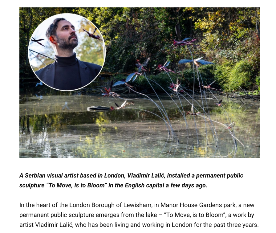 Serbian Times recently covered the installation of To Move, is to Bloom, a permanent public sculpture by Serbian visual artist Vladimir Lalić in Manor House Gardens, London, part of the Art Voyage Biennial and the Echoes of Migration project.